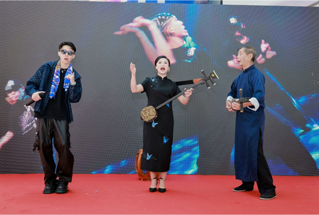 活动现场,国家级非遗传承人李仲球携创新改编的木鱼歌《潮涌鱼歌》率先登场,千年古韵与现代编曲碰撞出独特魅力。东城尺八传承人黎奇异的一曲《沧海一声笑》,以竹管深音演绎江湖豪情,引发现场阵阵喝彩。醒狮表演《龙腾盛世》融武术、舞蹈于一体,刚柔并济的表演赢得观众阵阵掌声。小英雄粤剧团的少儿演员们则以稚嫩身姿演绎《华阳湖畔表群花》,展现粤剧艺术的薪火相传。