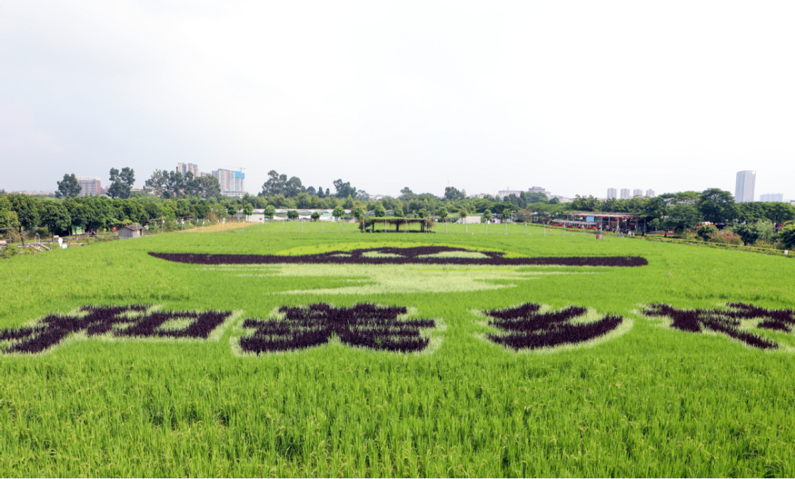 秋风轻拂,东莞东城周屋的彩色稻田画成为一道亮丽的风景线。这片1000多亩的稻田中,20多亩被用于种植黄、白、红、紫等四种颜色的彩稻,拼贴出东城黄旗灯笼、国贸等地标,以及青山、绿水、绿道、游人等景物,构成了一幅“人在城中、城在林中”的美丽画卷,吸引众多市民观赏、拍照。