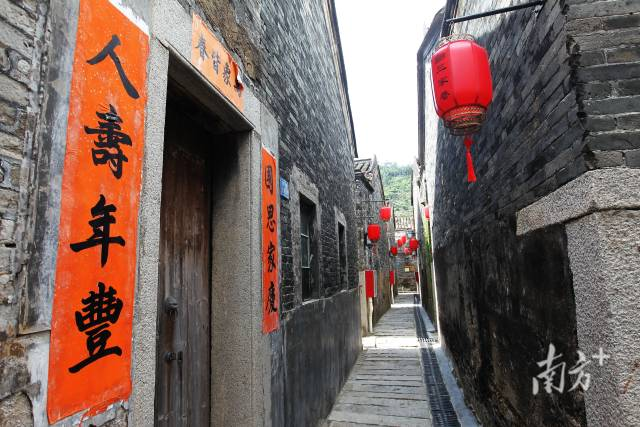 官仓古村,位于樟木头镇东南部、官仓河畔。这个始建于明崇祯年间的古村至今依然保留着方正的布局,村民早已迁出,宅院深锁,巷道幽深,悬挂着印有“三家巷”字迹的红色灯笼。