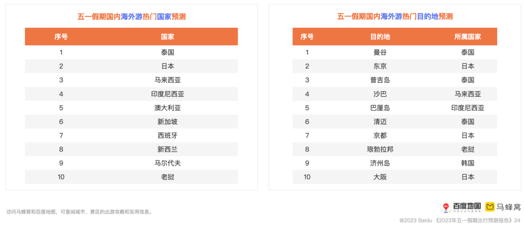 五一长假将至,近日,交通运输部公路科学研究院综合交通运输大数据处理及应用技术交通运输行业研发中心(中路高科集团),联合百度地图、公安部交通管理科学研究所、马蜂窝、百度智能云、百度百科等共同发布《2023年五⼀假期出⾏预测报告》(简称《报告》)。