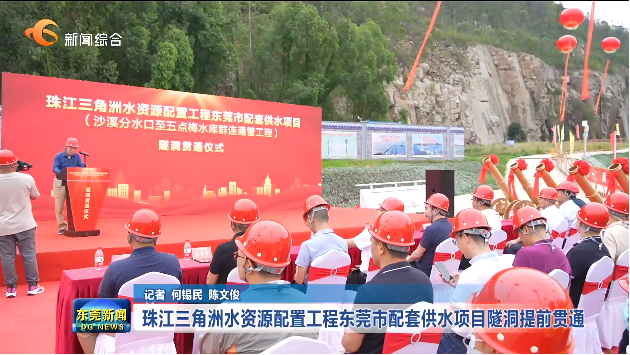 5月8日上午,珠江三角洲水资源配置工程东莞市配套供水项目(沙溪分水口至五点梅水库群连通管工程)举行隧洞贯通仪式。该工程提前25天实现隧洞贯通,为东莞早日实现双水源供水保障打下坚实的基础。
