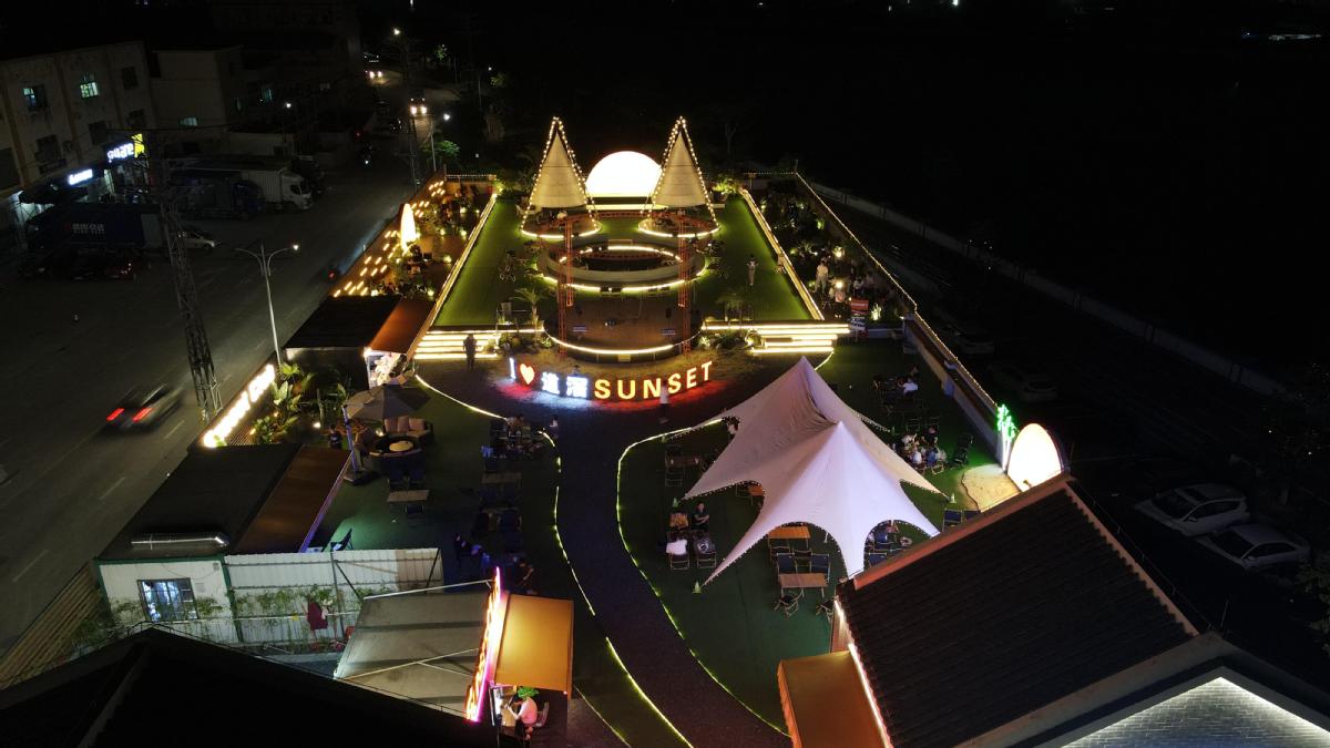 在sunset camp日落营地,游客们吹着岸边的微风,三五好友相聚小酌,听着驻唱歌手上悠扬的歌声。近两个月,这个依靠北海河碧道的营地已成为当下水乡年轻人夜晚常去的休闲地之一。“三五好友坐下来,边聊天边品尝美食,还可以欣赏美景,看着河面上是不是有龙船经过,很惬意。”九曲村村民阿辉说。