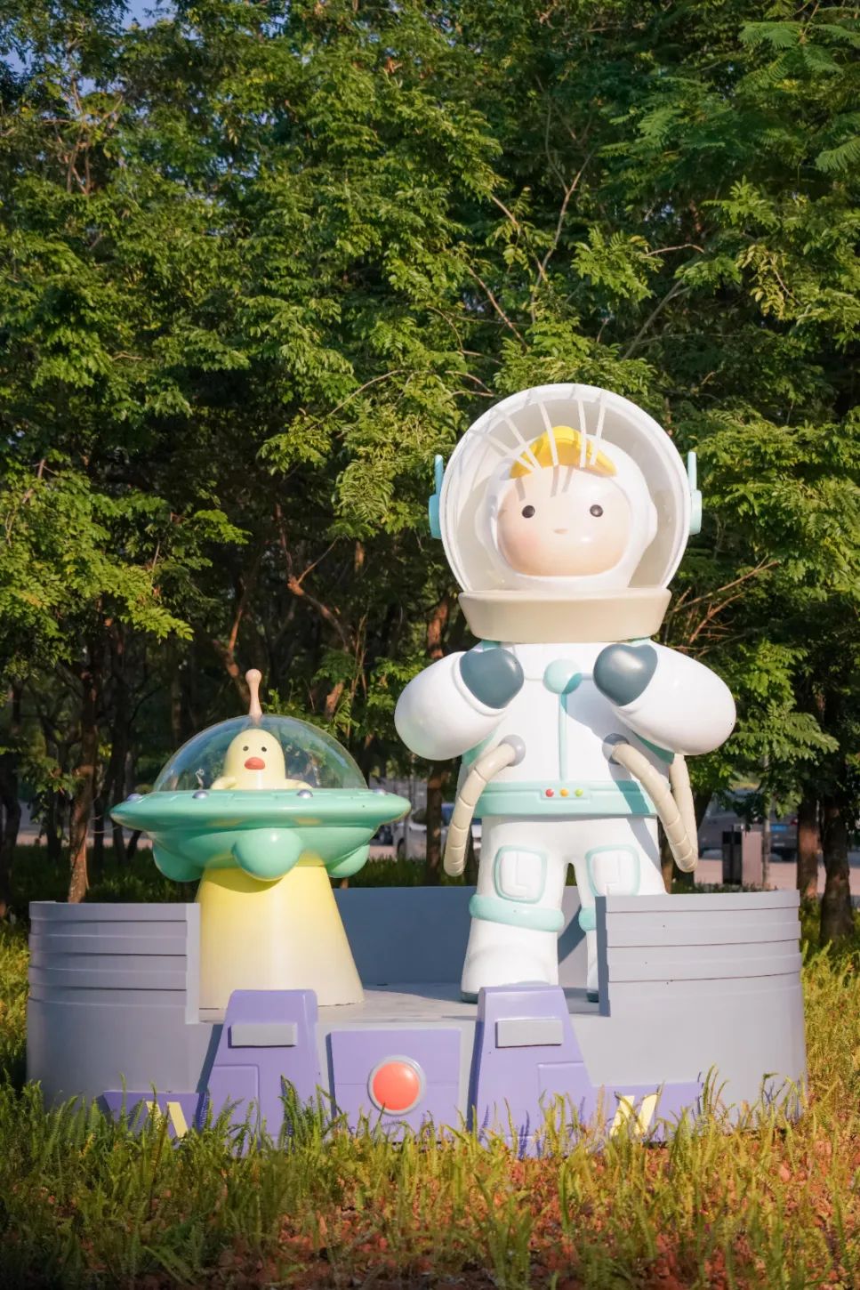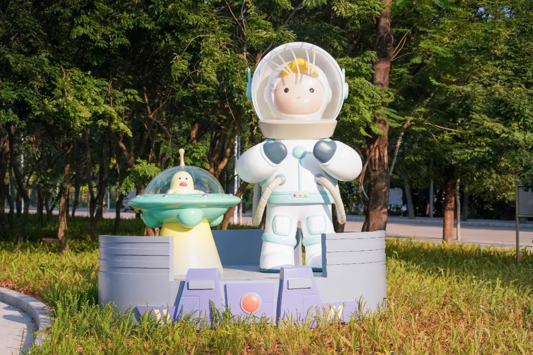Sueno宇航员则坐落于沿湖跑道旁,以载人航天精神激励人们勇往直前,可以在优美的水岸环境下一边运动,一边观赏,一边前行。