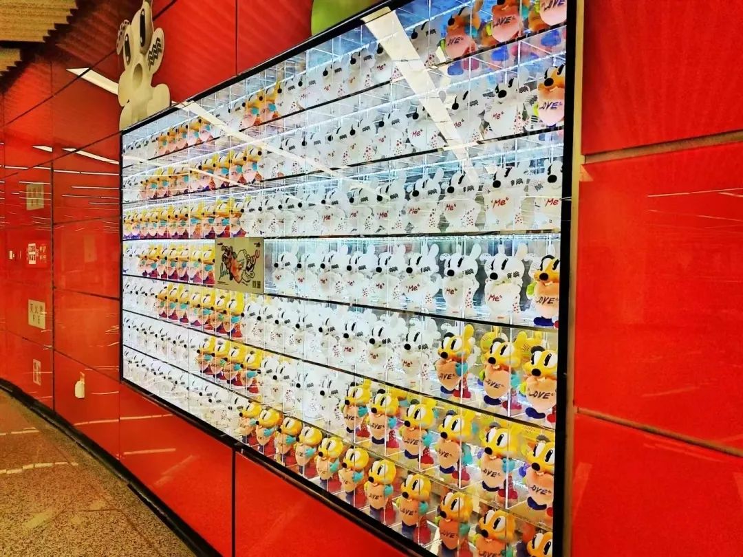 地铁站里也有潮玩?是的你没听错!鸿福路地铁站F口,大型HUGY地铁橱窗等你来!一整个橱窗都是HUGY哦,暑期限时上线,可不要错过啦!