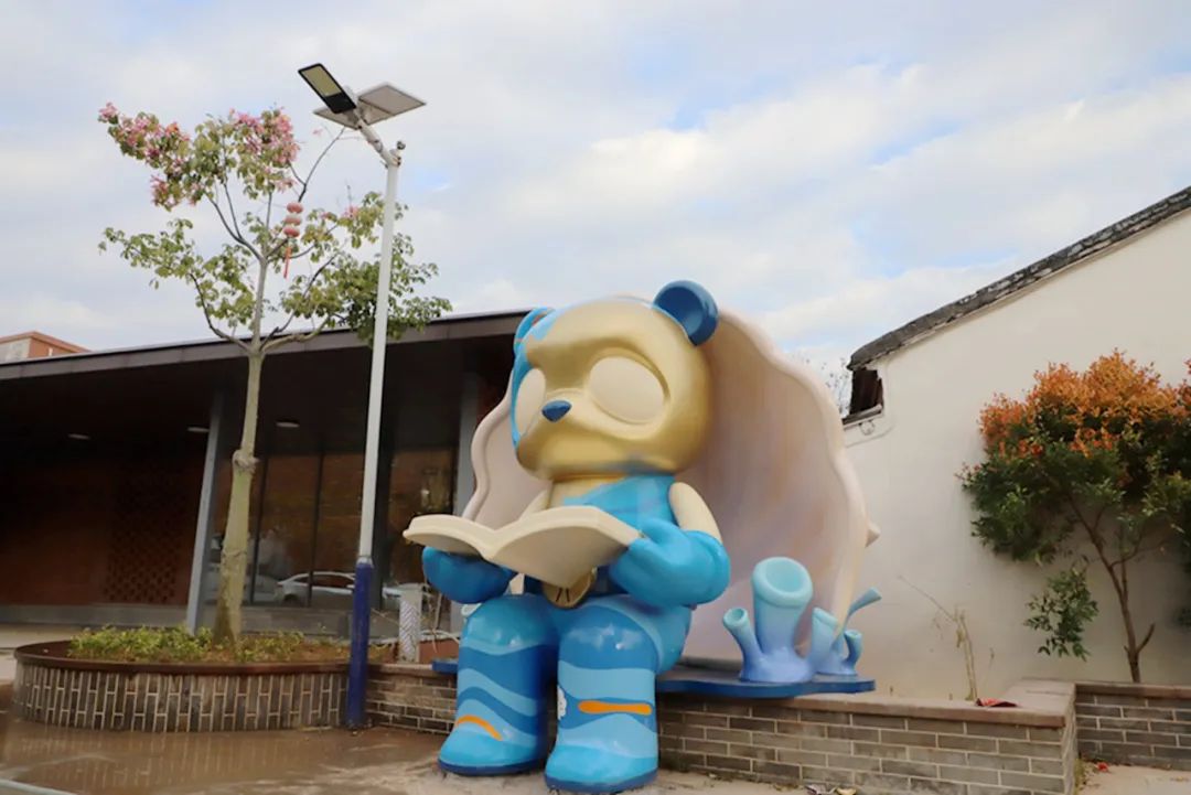 这里出现了造型各异的潮玩IP场景雕塑,在阳光下闪着耀眼的亮光,可互动也可观赏,这是庙边王村打造特色精品村建设工程项目的一部分。