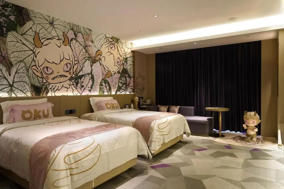 潮玩主题酒店你住过吗?这是东莞首家潮玩主题酒店,用东莞本土潮玩IP作为设计元素,内有包括“JOKA”“OKU”“FUZOO”等6个独具特色的“潮空间”主题房间,对床上四件套、墙纸、洗漱用品等进行定制化设计,让住客沉浸式体验潮流生活。