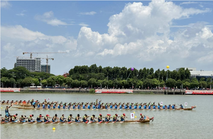 今年最受关注的“扒龙船”赛事当属在“中国龙舟之乡”东莞沙田隆重举办的粤港澳大湾区(广东)龙舟邀请赛暨东莞龙舟锦标赛。赛事期间,来自粤港澳大湾区的18支男女混合龙舟队参赛,带来了速度与力量的水上盛宴,展现“人文湾区、一水同舟、万众一心、赛龙夺锦”的壮观景象。数十家中央及地方媒体的实况转播,“燃”起了全国人民对龙舟赛事的高度关注。
