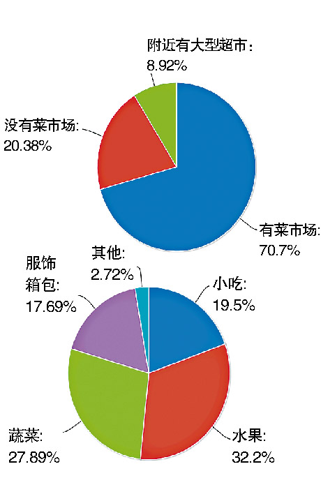 东莞阳光网日前对小区外流动摊贩的情况发布问卷调查,共收回159份有效问卷。数据显示,58.8%的市民表示家门口时常出没流动摊贩,销售的商品种类比重依次为水果、蔬菜和小吃(详见右图)。