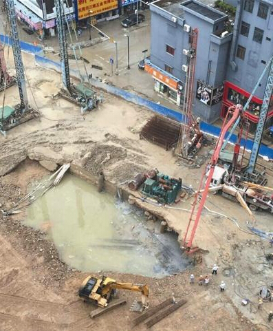 8月12日和13日,莞惠城轨工地常平段接连发生两次塌陷事故,造成联邦花园旁的塌陷面积达600多平方米,供气、供水、供电等管网断裂,塌陷点周边楼房部分桩基裸露,并有1名井下施工人员死亡。