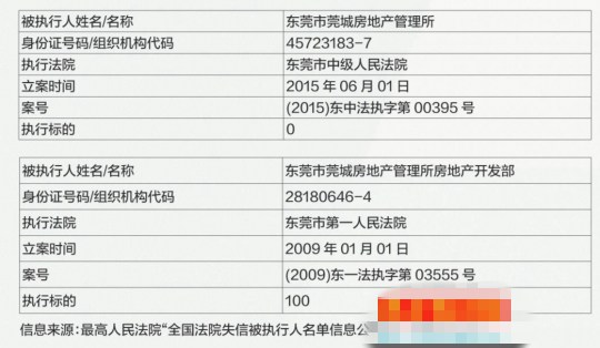 东莞莞城房管所和莞城房管所房地产开发部赫然在列,均被认定是“老赖”。系统显示莞城房管所房地产开发部2009年被立执行案件,执行标的100元,至今仍未执行。为何房管所会成老赖?莞城房管所和莞城房管所房地产开发部是何关系?对于上述疑问,