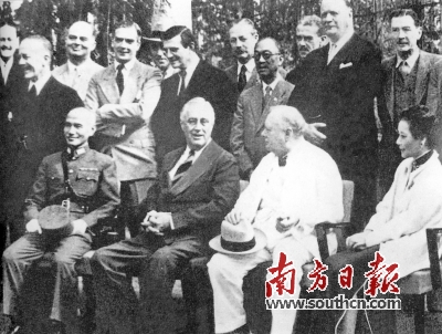 1943年11月王宠惠(二排右三)陪同蒋介石出席开罗会议。
