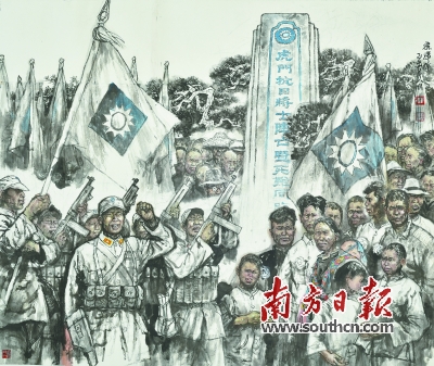 刘灿辉抗日画:抗战胜利后,虎门于1946年把日寇之前建的“东亚忠魂碑”改建成“虎门抗日阵亡将士暨死难同胞纪念碑”。