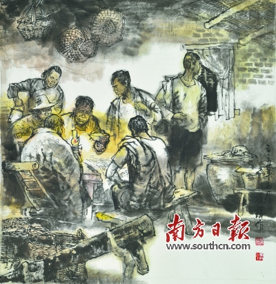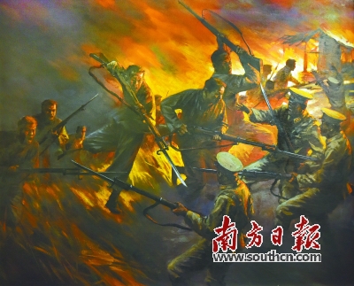 刘灿辉抗日画:虎门沦陷后,中共先后成立莞太区委和太平区委等地下党组织,配合部队打击了日伪军队。
