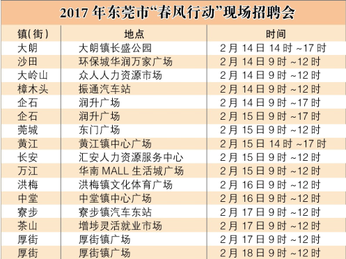 2017-02-13 08:45:27 | 民生节后东莞数十场招聘会遍及各镇街