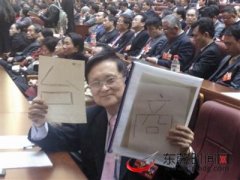 在昨日下午的大会即兴发言上,东莞台商协会前会长谢庆源手持“台”“商”二字抢麦 记者 谢瑞芳 摄 东莞时间网讯 昨日是政协第十一届广东省委员会第二...