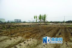 沙田立沙岛,原本一望无际的甘蔗林只剩下孤零零几根甘蔗。远处石化基地仓储罐、新建工厂正在步步逼近。记者 方光明 摄 这些年,它们在东莞过得不太好...