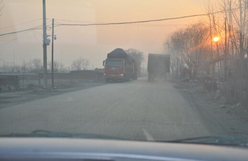 大型运输车辆超载运输把道路压的坑坑洼洼,采访时,记者看到放学回来的学生骑着自行车艰难的行走在崎岖不平的道路上,他们不时被淹没在粉尘中。