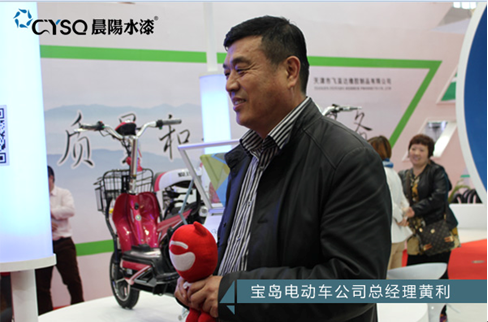 宝岛电动车总经理黄利先生表示,宝岛已与晨阳水漆达成合作协议,将进行深度合作。在谈及为何与晨阳水漆合作时,黄先生表示晨阳水漆在保光度、快速干燥性能、吸附力等众多方面有着其他产品无可比拟的优势,并认为绿色环保的水漆替代传统油漆只是时间问题,希望借与晨阳的合作提升市场占有率,为国人带来更为环保的新产品。