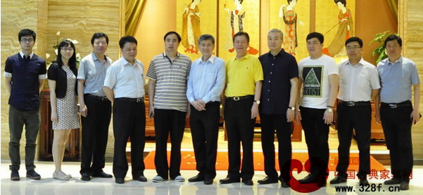 河南省新乡市获嘉县县委书记郭力铭(右四)率考察团到国寿红木参观并合影