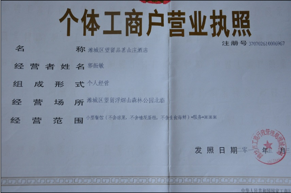 2011年6月,郭振敏与丈夫来到山东潍坊浮烟山开办品茗山庄酒店,主营餐饮。“我丈夫常年在潍坊工作,认识了很多当官的,我也觉得有官员照顾,生意肯定会好。”郭振敏说。于是郭振敏辞掉了在北京原本不错的工作,带着积蓄来到浮烟山。经过4个多月的筹备,于当年10月16日开始营业。营业期间,当地的一些领导干部屡有光顾,并且还介绍其他机关单位的朋友前来捧场。