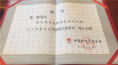 4月18-19日,情歌王子贺一航应邀出席由中国日报网、中国红十字基金会联合主办的《启航明天》鲁冰花公益计划走进河南“我想有个家 慈善晚会,并获颁“公益爱心大使”荣誉称号。