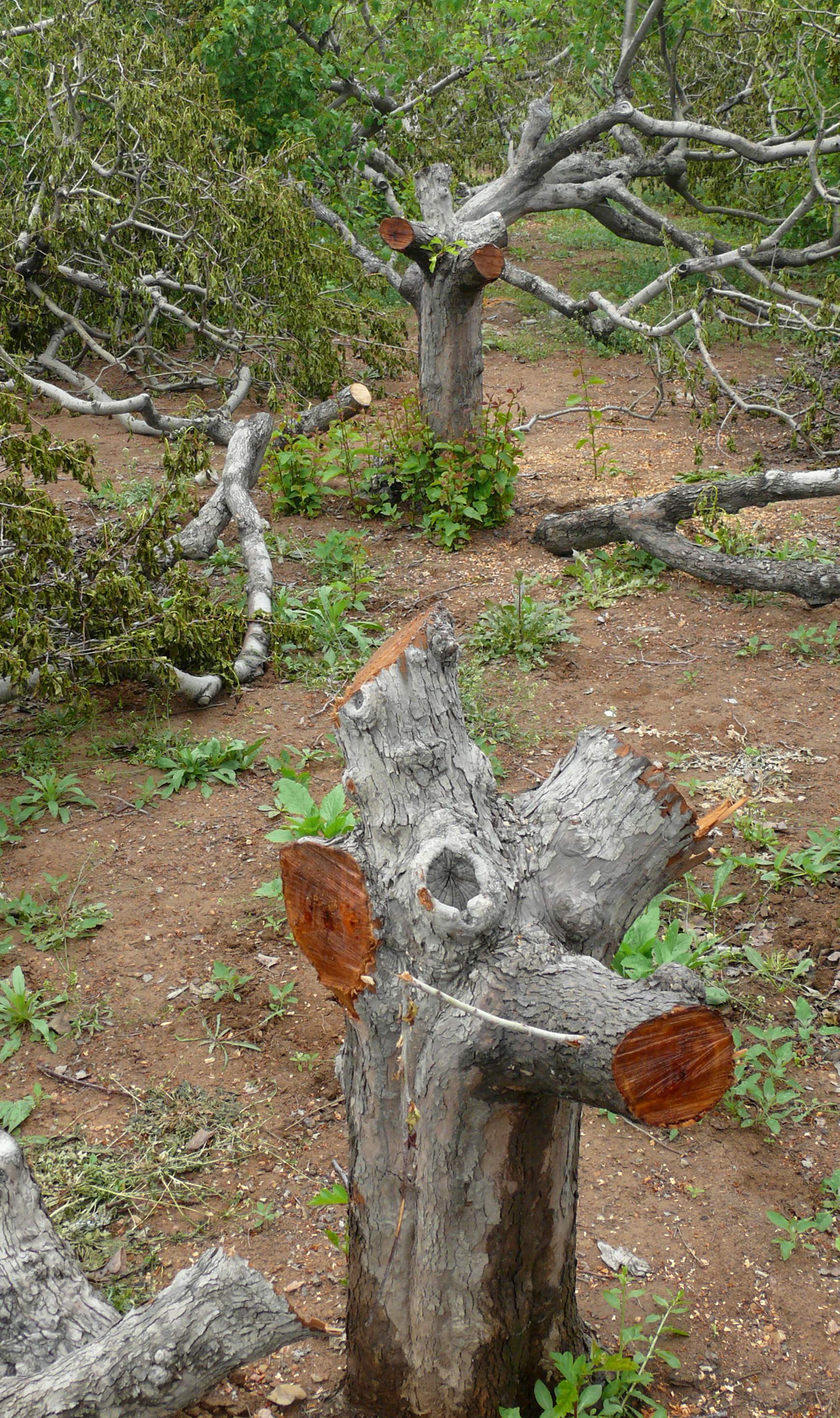 2015年4月15日,对于大多数人来说,是十分普通的一天。但对于山东省临沂市兰山区义堂镇沙沟崖村的王忠、陈守海、陈克举、杨义朋、郭朝运、陈守江等6户人家来讲,却是一个灾难性的日子。他们苦心栽培十多年的近2000棵山楂、桃子、核桃等果树,在锯子的轰鸣声中树头落地。