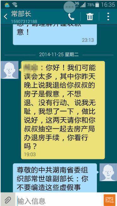在与常世雄的短信、会见(有录音及短信证据)等来往中,常世雄并不回避房子的事,并称此事他已经向老干局纪检部门说过,并安排老干局纪检组长和我们见面。实际上,局纪检能查处常世雄的事吗?下级能查处上级吗?太荒唐。