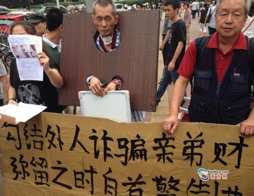 2007年,张兴坤的弟弟因事入狱,张兴坤则趁机采用冒充签名、骗取委托书等形式,将其弟弟名下的公司股份转让给了他人。此后真相暴露,张兴坤成为全家“公敌”。今年5月中旬,身患喉癌的张兴坤在广州街头戴枷自首,既是为当年之事忏悔,也是期望诈骗之事能够得到处理。