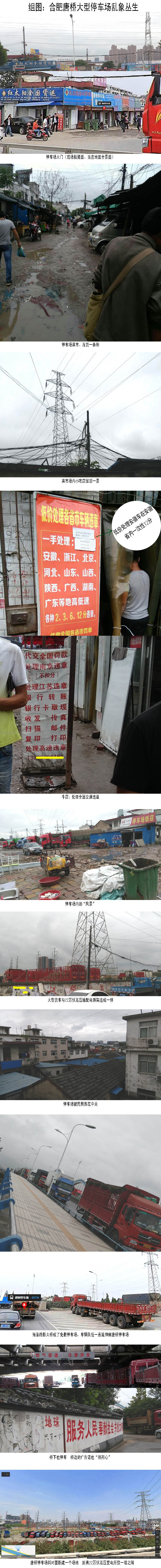 近日,合肥市民于《万家热线》等多家论坛再次发出整治停车场呼吁:“全国文明城市”荣誉下的败笔——合肥唐桥停车场。高压电塔下一群违章搭建起来的简易板房,四周拉着横七竖八的电线,违法黑中介聚集,无证脏乱餐饮扎堆,暗藏在居住区的赌坊、娼屋,随处可见的垃圾堆、臭水沟,这就是在合肥市屹立近十多年“不倒”的唐桥停车场。住在这一带的人说是水深火热一点不奇怪,每天大货车呼啸往来,晴天就是灰尘卷天铺地,雨天就是带着泥泞铺满道,路人躲闪不及便一身脏。早在几年前就有市民投诉市长信箱说要拆除,迟迟不整顿,至今仍然不动。