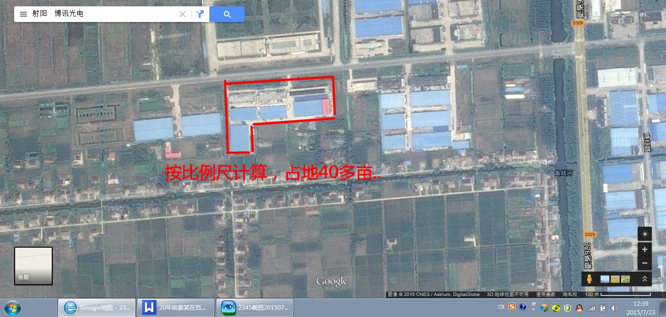 记者通过卫星地图比例尺计算得到“博讯光电”占地数据约为40多亩。
