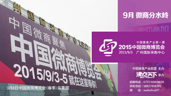 据悉,2015年秋季中国微商博览会已经正式敲定于9月3-5日开幕,举办地点设在中国广州(琶洲)国际采购中心,主办单位为中国商业联合会、中国微商产业联盟。