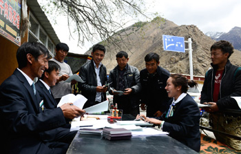 多年来,农行西藏分行以牺牲城市业务发展为代价,将全行95%的机构、67%的人员常年坚守在西藏自然环境最恶劣、基础设施最落后、经济基础最薄弱、生产生活条件最艰苦的县域和广大农牧区,过去五年又将新招收的1000多名员工中90%充实至农牧区县支行和营业所,为信贷扶贫提供了有力的人力资源支撑。该行不断优化农牧区机构布局,尽管农牧区网点经营效益差,但该行站在事关西藏局势稳定的大局,过去五年还面向金融机构空白乡镇,开工建设新网点10个,保证了金融服务有效覆盖面。目前,该行共有物理网点508个,在西藏684个乡镇中,有339个乡镇所在地设有农行物理网点,并在全区城乡设置205个自助网点、1005台ATM等金融自助机具,在县以下农牧区共设立“三农”金融服务点3261个。同时,该行出台实施《流动金融服务管理办法》,发扬“背包下乡、走村串户”的优良传统,采取“马背银行、汽车银行、摩托车银行”等多种形式,提供流动金融服务。据统计,该行每个营业所平均流动金融服务面积达2100平方公里、全行每年流动金融服务频次达4530余次,在素有世界海拔最高乡之称的山南浪卡子普玛江塘乡(海拔5373米)等人类生存的极限地也能享受到农行的流动金融服务。
