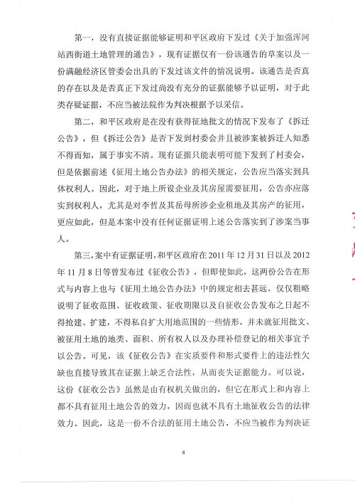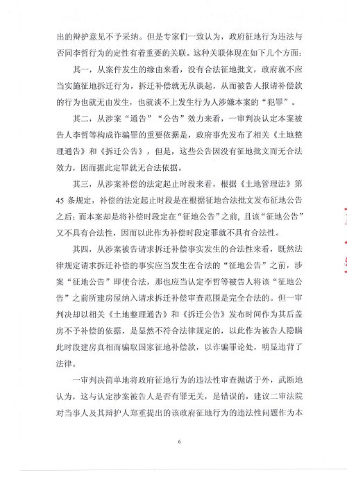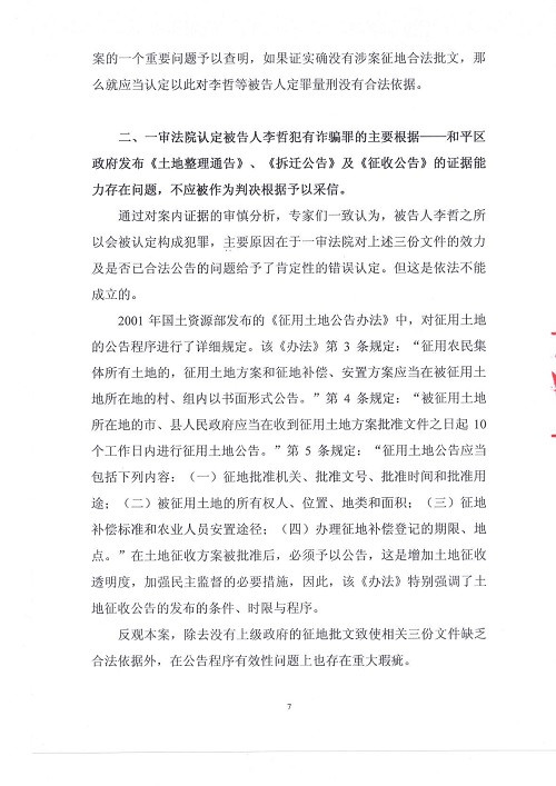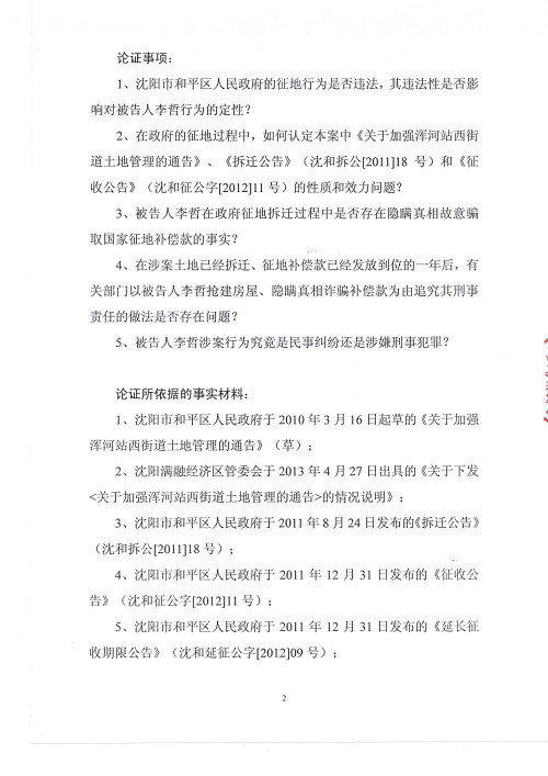 沈阳市中级人民法院定罪所依据的《土地整理通告》、《拆迁公告》及《征收公告》非法无效,不应以此作为对李哲等人定罪的依据。
