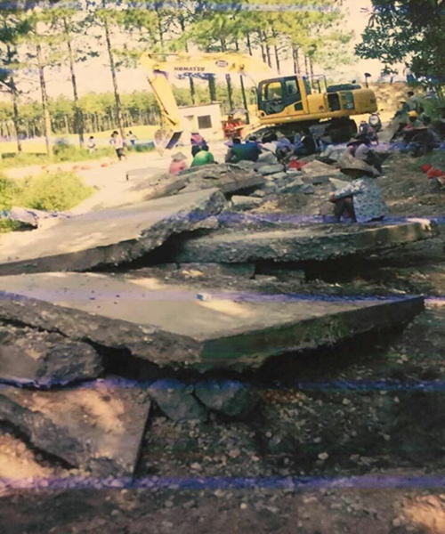 据当地村民介绍,下吕村是是漳州市古雷开发区林前村的一个渔村,行政上属于杜浔镇管辖,全村一千多人祖祖辈辈以下海捕鱼为生。从村头到海边的一条路1.5公里左右,下吕人踏着先人的脚印不知走过了多少回。2015年4月26日凌晨,漳州碧海置业有限公司在村民们不知道的情况下为了高尔夫球场的尾期施工,霸道的将道路挖毁。早晨出海打渔的村民发现出海路被毁掉一部分后,迅速跑回村告诉了大家,村民们赶到现场及时制止了毁路行为,并扣下了来不及逃走的几台挖土机。让村民们气愤的是挖路现场还停留着多辆警车和执法车。