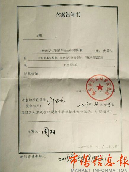 “一看这种情况,8月20号我们找临沂市公安局,我们向市信访局递交了材料,却被拒绝接收。第二天又到市检察院,市检查院也是拒绝接收材料。25号,我们又到省纪委信访,他们看完材料后告诉我说,这个案子在2015年5月3号就已经转到省公安厅了,然而我们又到省公安厅,省公安厅却说没见这个案子,让我们回去找市检察院。”刘兰欣说:“由于我们一直追,不停的向上反映。”就这样各部门来回推脱,然而没想到今年在8月28日,临沂市公安局罗庄分局以“欧亚汽车乐园被故意损毁财物”立案,明明是3月8号发生的事,立案却在8月28日。
