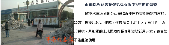市场信息报【记者 谈春平 秦亮】本报之前报道山东临沂盛庄办事处陈家白庄,投资1.2亿元的欧亚汽车乐园遭暴力拆迁,从2012年开始,企业先后被不明身份人士多次打砸烧抢,当时被定为涉黑案件,公安部批示督办。