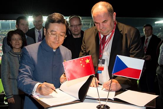 陈秋途总裁与捷克足联主席米洛斯拉夫·佩尔塔签署官方合作协议