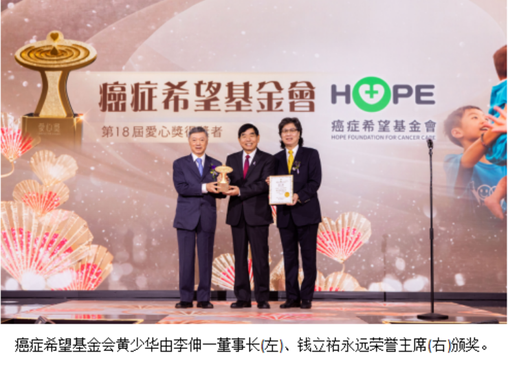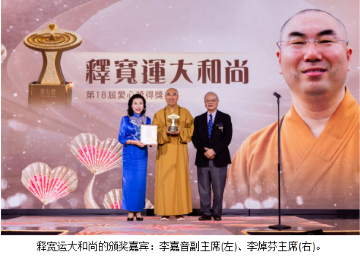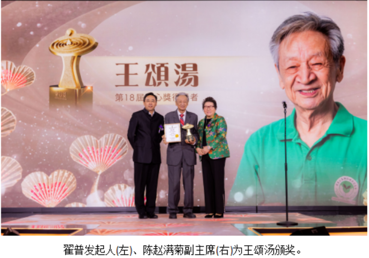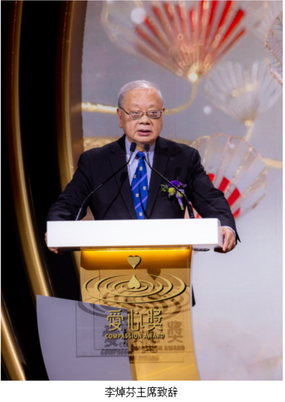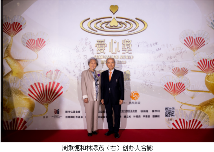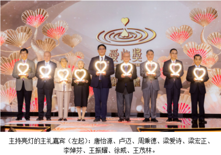 在这里,我们特别要向费尽心力、创意并培育爱心奖十八载的两位年高德劭、集智善于一身的长者即梁爱诗主席、林添茂主席致以崇高敬意!你们的卓越贡献,将会永载中华史册!”