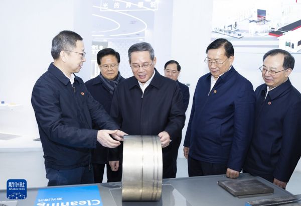 1月2日至3日,中共中央政治局常委、国务院总理李强在湖北调研。这是1月3日,李强在武汉华工激光工程有限责任公司深入了解激光产业发展情况。新华社记者 黄敬文 摄