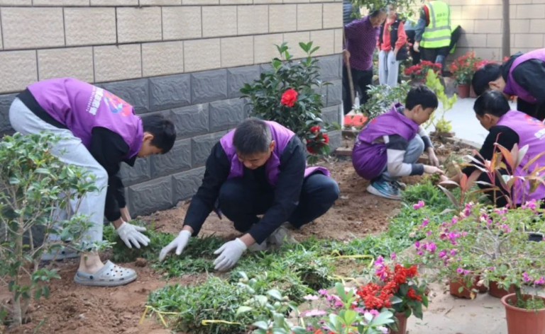 在冬日的阳光下,大家热情高涨、干劲十足,呈现出一派热火朝天的“美丽庭院”建设场景。巾帼志愿者们与湴湖村家庭住户共同行动,清扫垃圾、清理落叶、拔除杂草、松土挖坑、剪枝修叶、种花浇水……以实际行动携手“扮靓”村居。经过大家的努力,一个个庭院展新颜,干净整洁、花团锦簇,处处生机盎然。