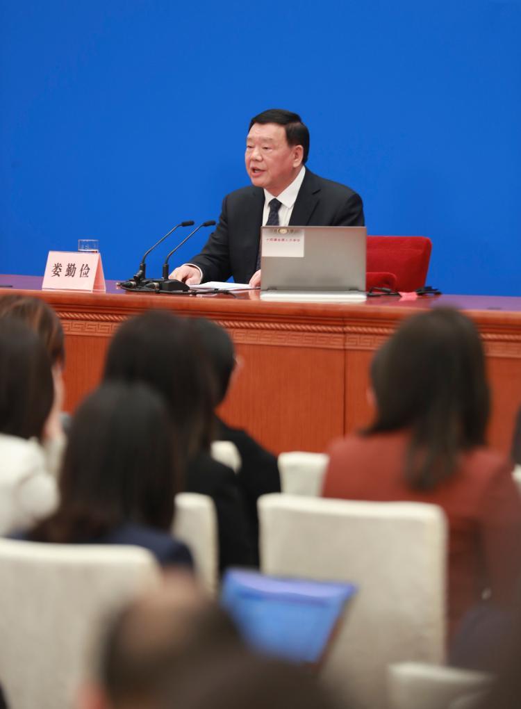 3月4日,十四届全国人大二次会议在北京人民大会堂举行新闻发布会。大会发言人娄勤俭就大会议程和人大工作相关问题回答中外记者的提问。新华社记者 卢烨 摄