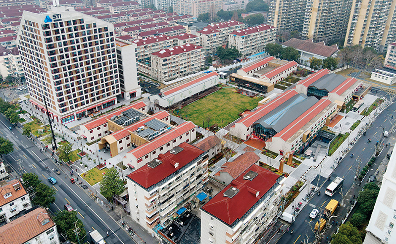 228街坊,是上海20世纪50年代兴建的第一批“两万户”工人住宅之一。如今在这里,素墙红瓦的建筑保留了工人新村的“乡愁”,新引入的社区食堂、健身房、公共绿地空间形成了全新的“15分钟生活圈”:有平价餐厅为附近居民提供“三餐热食”;有开放草坪供孩子们奔跑,让青年人玩飞盘、看露天电影;有新建的配套人才公寓,还特地设置“猫咪层”,方便有宠家庭入住。