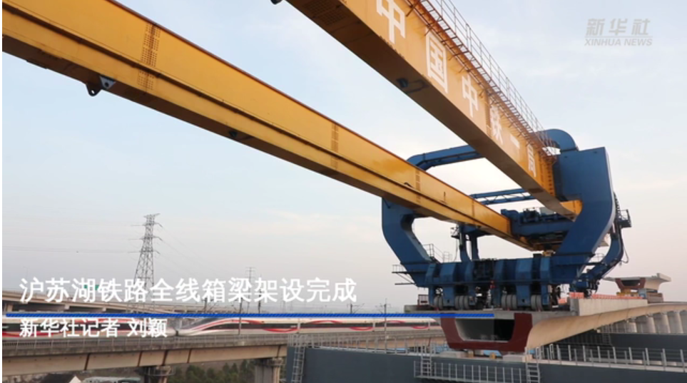 3月4日凌晨,在沪苏湖铁路松江特大桥施工现场,随着最后一榀箱梁成功架设到桥墩上,沪苏湖铁路全线箱梁架设完成,标志着该铁路项目正稳步向全线贯通的目标迈进。(记者:刘颖)(来源:新华网)