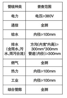 本次重点普查城市道路和街巷,主要包括快速路、主干路、次干路、支路、通道和其他公共区域地下设施区域,居住小区、企事业单位及商业办公等区域暂不纳入普查范围。对穿越非普查区域的主干管线不得中断,以保持主干管线的连续性。对正在规划建设的地下市政基础设施,暂不进行普查,纳入后期动态更新管理。