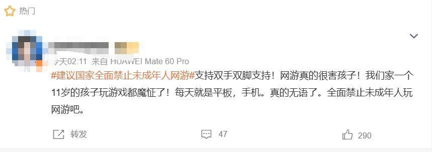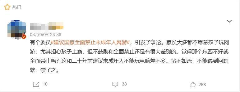 鞭牛士 3月7日消息,#建议国家全面禁止未成年人网游#话题登上热搜榜单第一,今日阅读量1.5亿。