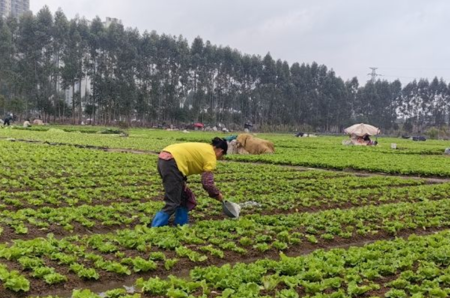 陈叔夫妻两人正忙着挖沟、翻土。陈叔说,翻耕松土后,移栽一些强壮的生菜苗,生菜苗对土地环境的适应性比较强,在移栽后容易成活,并且生长速度快,更有利于丰产丰收。这些生菜苗大约40天就可以收成。