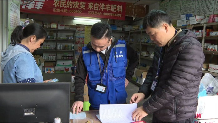检查人员深入辖区农资经营单位进行执法检查,通过现场询问、实地检查、查阅台账等形式,对场所的经营资质、进货台账、销售记录进行核对,并重点就上架销售的种子、化肥、农药等农资产品的生产日期、厂家信息、销售价格等进行检查,严防假冒伪劣和“三无”农资产品流入农民手中。