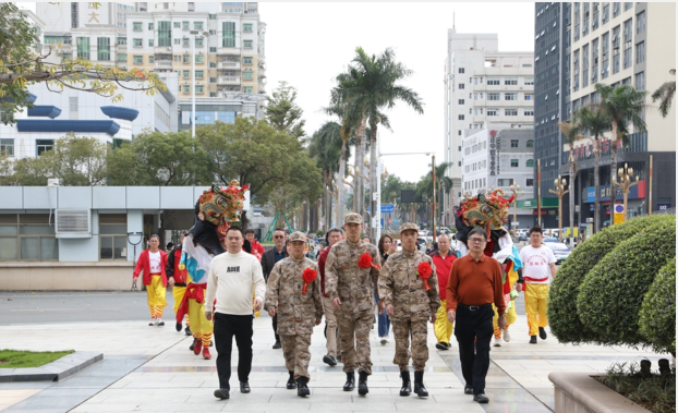 欢送会现场锣鼓喧天,醒狮起舞。新兵们个个身穿戎装,胸戴红花,在家人和村(社区)干部的陪同下,即将奔赴军营,开始人生新征程。