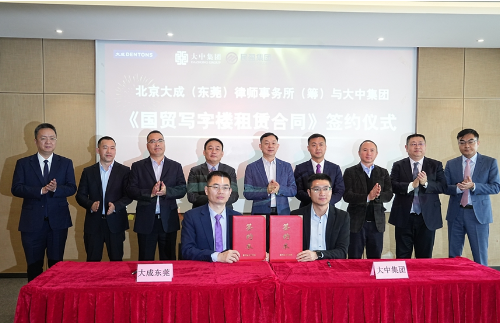 3月20日上午,北京大成(东莞)律师事务所落户东莞东城签约仪式在民盈国贸中心举行。签约仪式上,东城街道、东莞市司法局、东莞市律师协会以及大中集团分别与北京大成(东莞)律师事务所签署了合作协议。