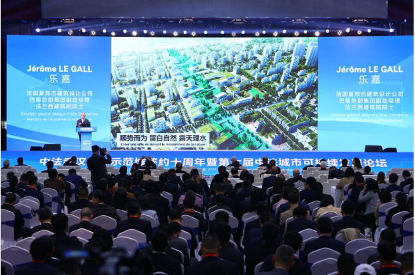 当日,中法武汉生态示范城签约十周年暨第七届中法城市可持续发展论坛在武汉举办。500余名中外嘉宾汇聚一堂,探讨应对全球气候变化和推动城市可持续发展这一人类共同课题。